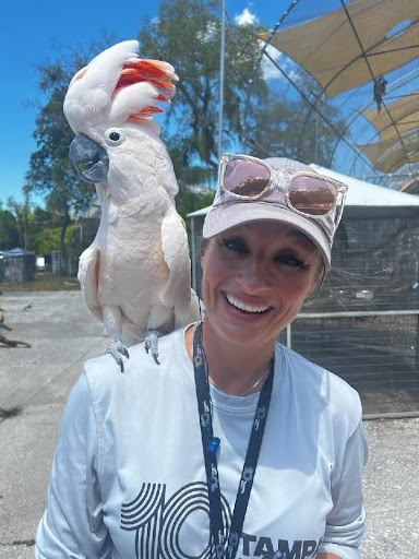 The 10 Tampa Bay team spent over two hours with us May 2 touring, taping, and interviewing. The team and our staff had great fun interacting with one another, and Courtney and Daisey clearly enjoyed meeting several of our lifelong residents “up close and personal”. The team also learned a great deal about parrots and their care needs.